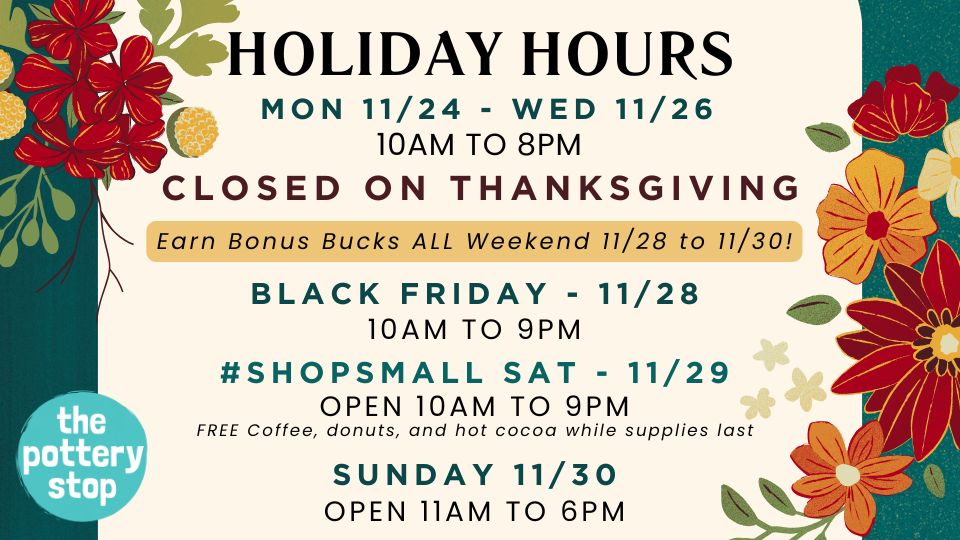 You can't quarantine creativity! Choose your projects, colors, and materials online to paint at home. Just bring back for firing.
